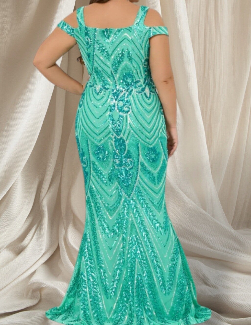 Mintgroene Avondjurk met Pailletten